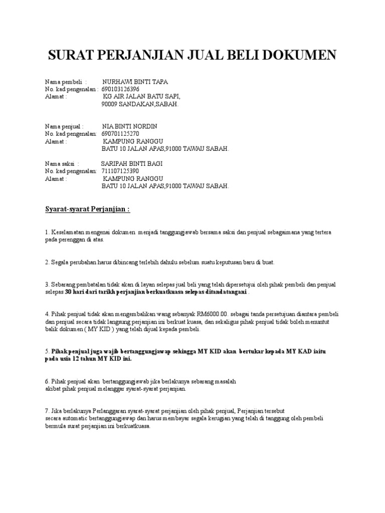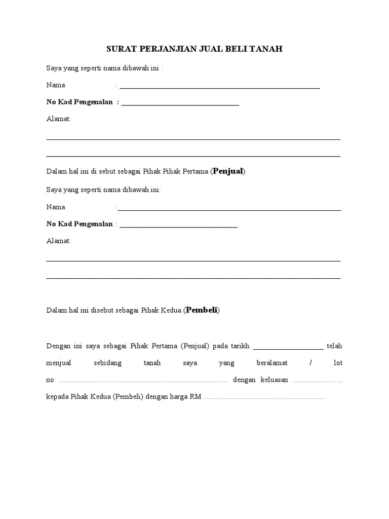 Contoh Surat Perjanjian Jual Beli Tanah Di Malaysia Amirctzx