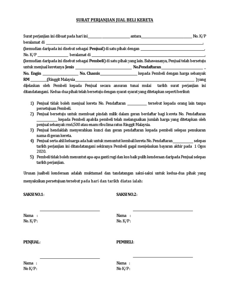 Surat Perjanjian Jual Beli Kereta Pdf
